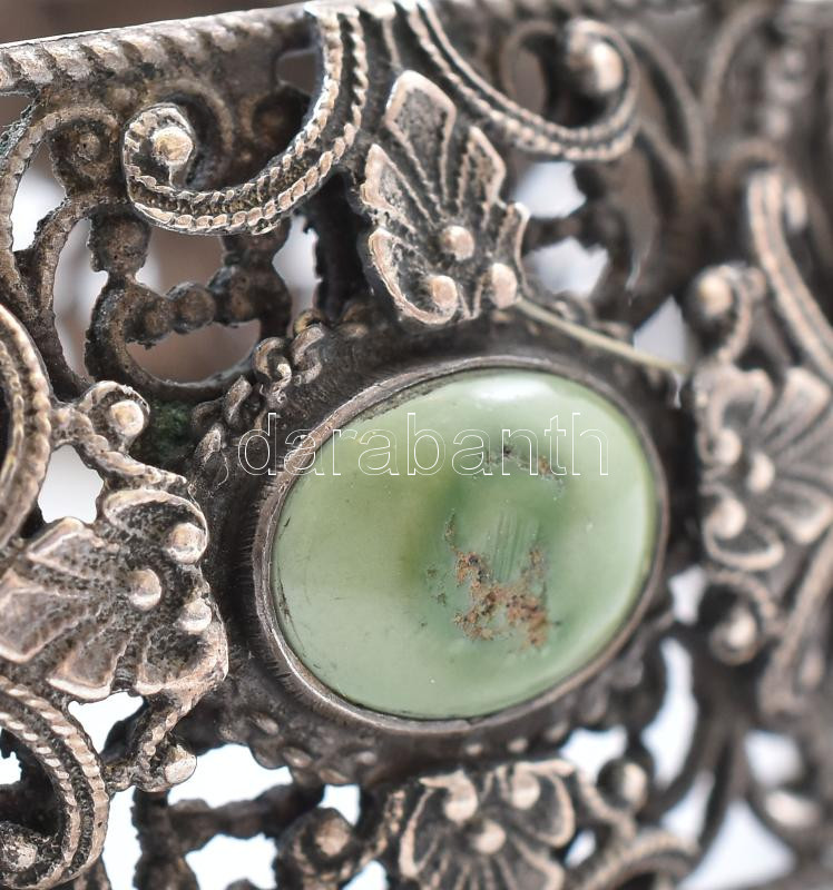 Ezüst (Ag) exkluzív karkötő jáde berakással, filigrán kidolgozással, b...