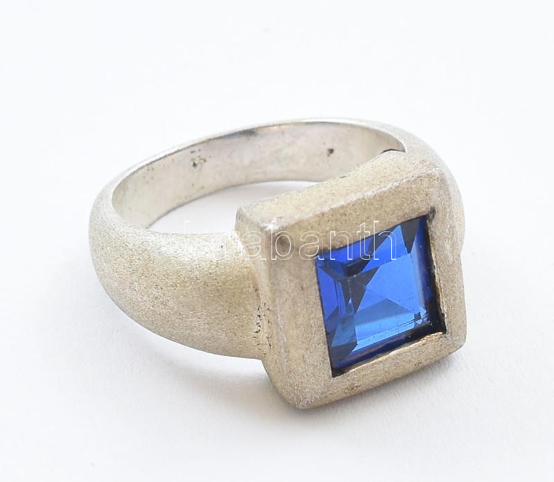 Ezüst(Ag) gyűrű kék kővel, jelzett, méret: 57, bruttó: 7,6 g