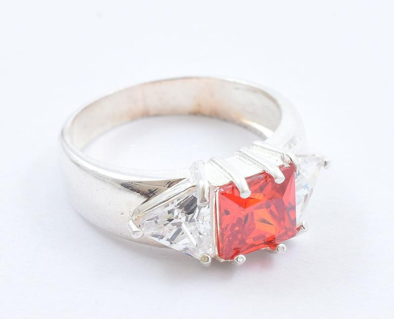 Ezüst(Ag) gyűrű narancssárga kővel, jelzett, méret: 57, bruttó: 5,4 g