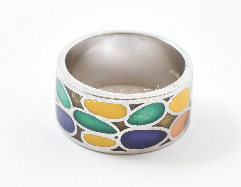 Ezüst(Ag) gyűrű zománcozott berakással, jelzett, méret: 54, bruttó: 6,9 g