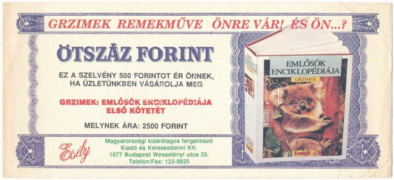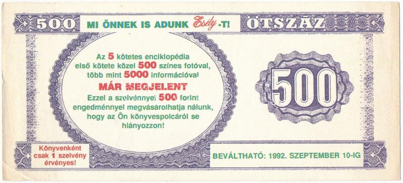 1992. 500 Forintos bankjegyet mintázó vásárlási utalvány T:VF