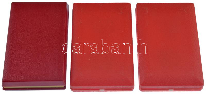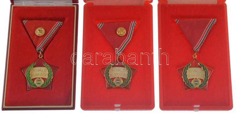 ~1970. "Kiváló Munkáért" aranyozott, zománcozott fém kitüntetés mellszalagon, eredeti tokban (3db) egyik az egészségügyi miniatűrrel, másik a Mezőgazdasági Minisztérium miniatűrjével, a harmadik miniatűr nélkül T:AU