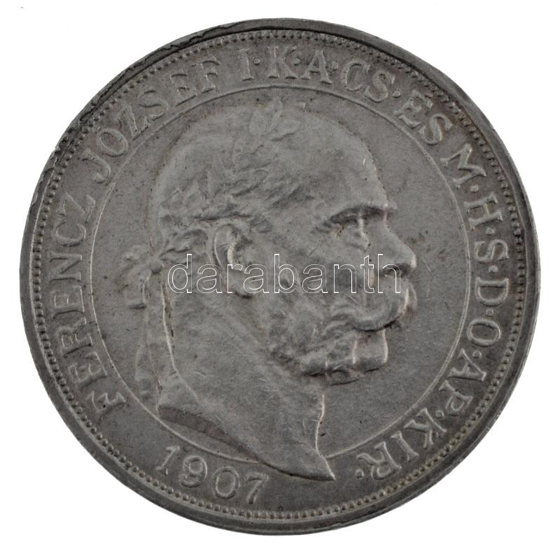 https://www.darabanth.com/en/437-Online-auction/437.0/Numismatics/Hungarian-coins-and-coins-with-Hungarian-mint-marks~2000008/1907KB-5K-Ag-Ferenc-Jozsef-megkoronazasanak-40-evforduloja-kapszulaban-peremen-kis-anyagf~II2844759