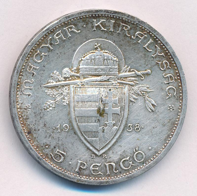 https://www.darabanth.com/en/437-Online-auction/437.0/Numismatics/Hungarian-coins-and-coins-with-Hungarian-mint-marks~2000008/1938-5P-Ag-Szent-Istvan-T1-kis-ph-patina-Adamo-P81~II2837250