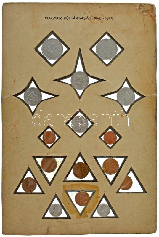 1946-1949. 2f-2Ft (15xklf) + 1951. 5f Al ~1950-60-as évekbeli házi készítésű, "Magyar Köztársaság 1946-1949" feliratú berakóban T:AU-VF