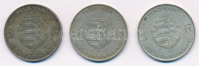 1947. 5Ft Ag "Kossuth" (3x) T:VF,F patina Adamo F8.1