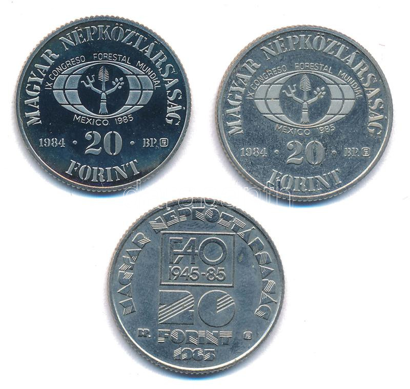 https://www.darabanth.com/en/437-Online-auction/437.0/Numismatics/Hungarian-coins-and-coins-with-Hungarian-mint-marks~2000008/1984-20Ft-Cu-Ni-FAO-Vedd-az-erdot-BU-es-PP-ermepar-2xklf-plus-1985-20Ft-FAO-TUNC-AU-Ada~II2844806
