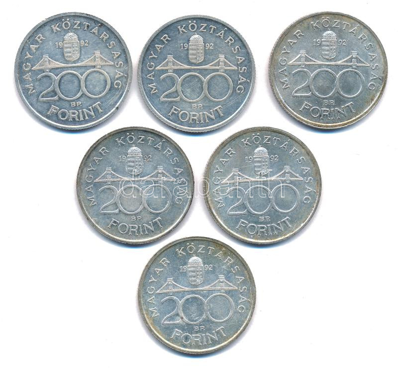 1992. 200Ft Ag "MNB" (6x) T:AU patina Adamo F13
