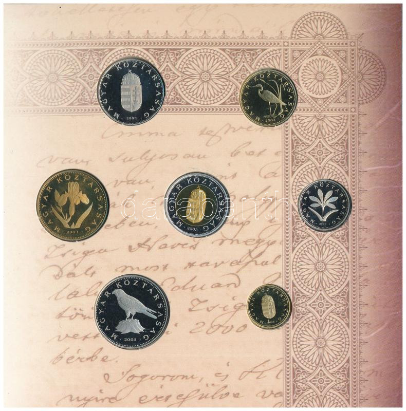 2003. 1Ft-100Ft (7xklf) forgalmi sor szettben + 20Ft "Deák Ferenc... https://www.darabanth.com/en/437-Online-auction/437.0/Numismatics/Hungarian-coins-and-coins-with-Hungarian-mint-marks~2000008/2003-1Ft-100Ft-7xklf-forgalmi-sor-szettben-plus-20Ft-Deak-Ferenc-forgalmi-emlekerme-belso-tok~II2853106