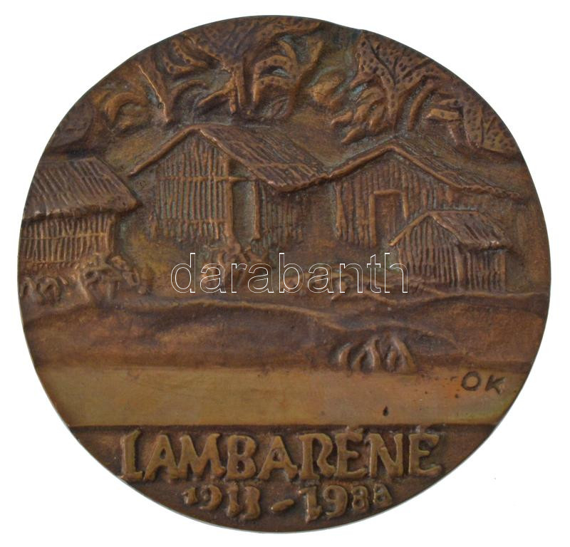 Ócsai Károly (1938-2011) DN "Dr. Albert Schweitzer / Lambaréné 1913-1988" kétoldalas, öntött bronz emlékérem (80mm) T:1-