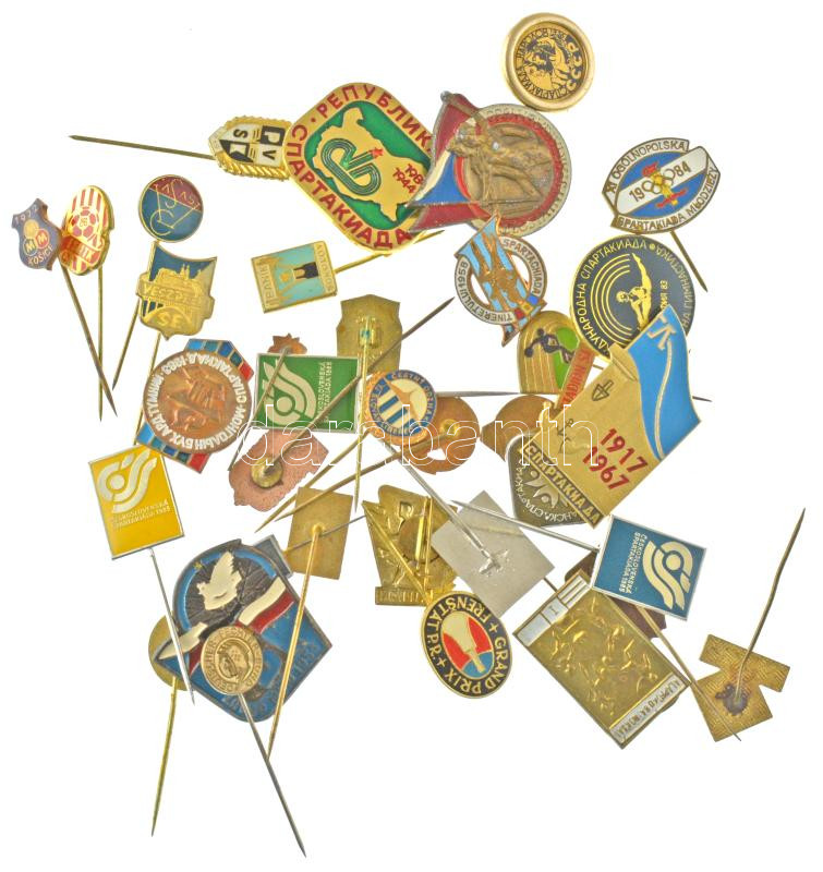 36db-os magyar és külföldi sportjelvény-tétel, közte labdarúgó és "Spartakiád" jelvények T:vegyes
