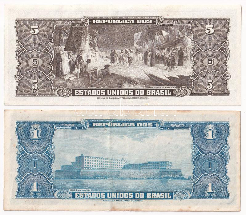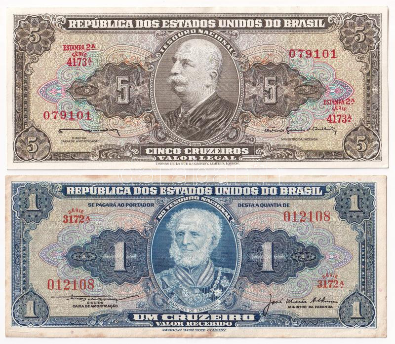 Brazil ND (1956) 1 Cruzeiro + ND (1964) 5 Cruzeiros C:VF,F spot