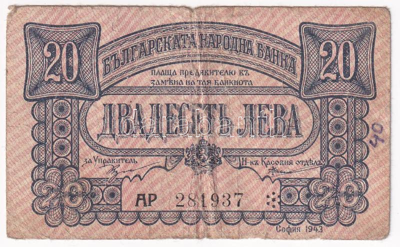 Bulgaria 1943. 20 Leva "AP 281937" C:VG material error around the corners