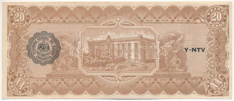 Mexikó / Forradalom / Chihuahua 1915. 20P hátoldalán fekete felülbélye... https://www.darabanth.com/en/437-Online-auction/437.0/Numismatics/Worldwide-banknotes~2000013/Mexiko-Forradalom-Chihuahua-1915-20P-hatoldalan-fekete-felulbelyegzes-TF-szep-papir-M~II2841031