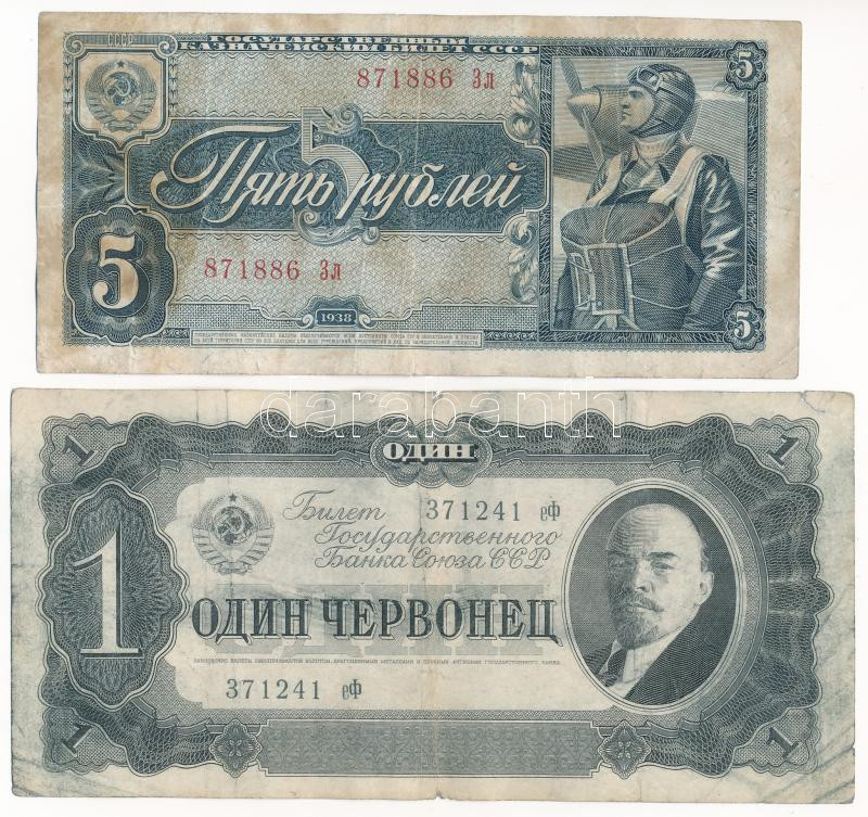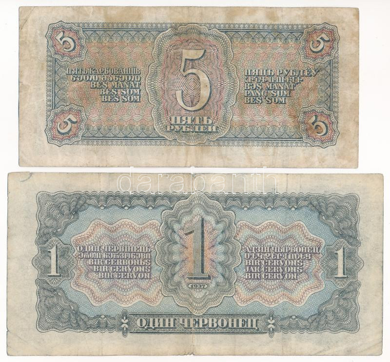 https://www.darabanth.com/en/437-Online-auction/437.0/Numismatics/Worldwide-banknotes~2000013/Szovjetunio-1937-1Ch-plus-1938-5R-TIII-Soviet-Union-1937-1-Chervonetz-plus-1938-5-Rubles-CF-Kraus~II2836886