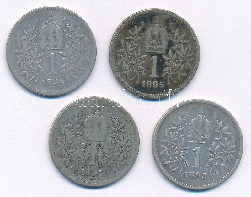 Ausztria 1893-1895. 1K Ag "Ferenc József" (4xklf) T:3 patina...
