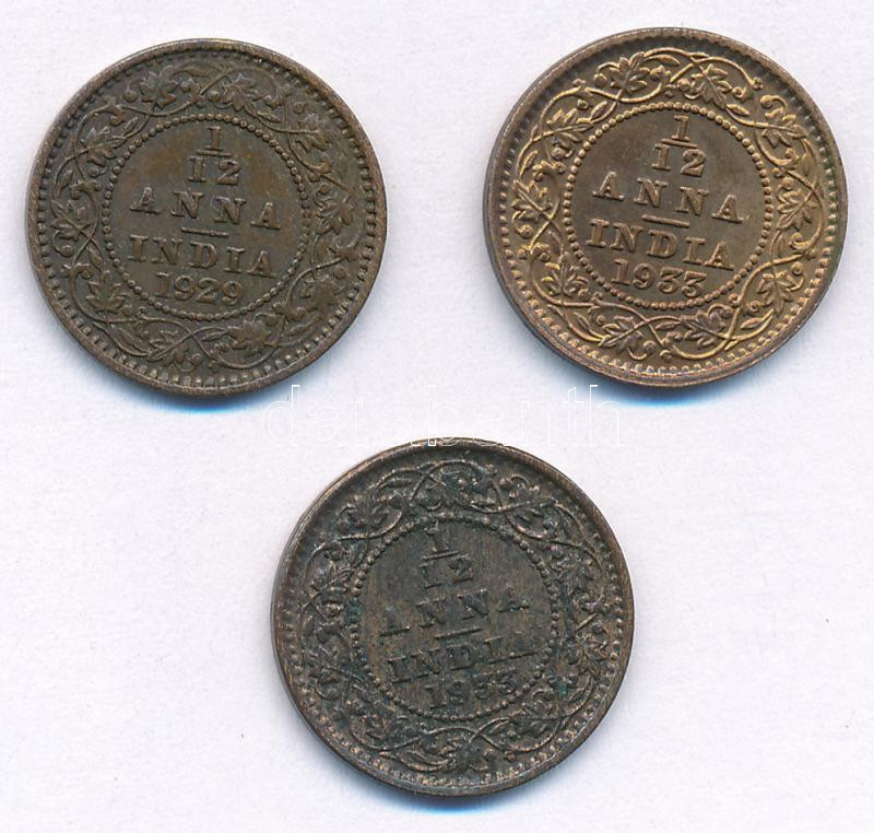 India / Brit India 1929-1933. 1/12a Cu "V. György" (3db, 2xk...