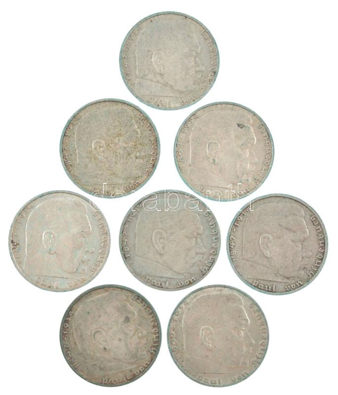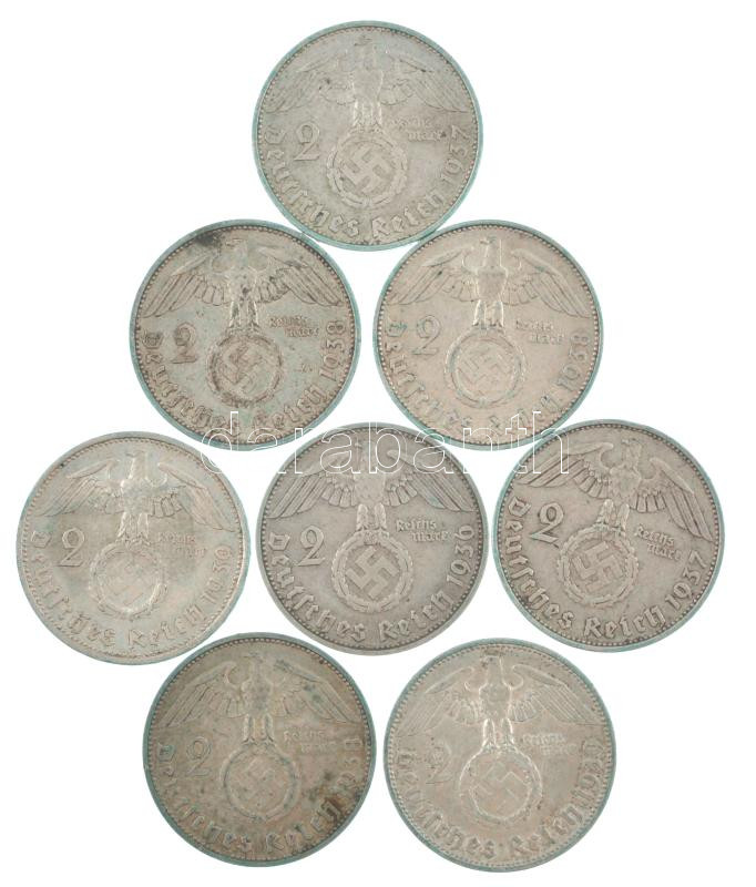 Német Harmadik Birodalom 1936-1939. 2M Ag "Hindenburg" (8db/... https://www.darabanth.com/en/437-Online-auction/437.0/Numismatics/Worldwide-silver-and-metal-coins~2500001/Nemet-Harmadik-Birodalom-1936-1939-2M-Ag-Hindenburg-8db7xklf-TXF-VF-patina-German-Third-Rei~II2848690