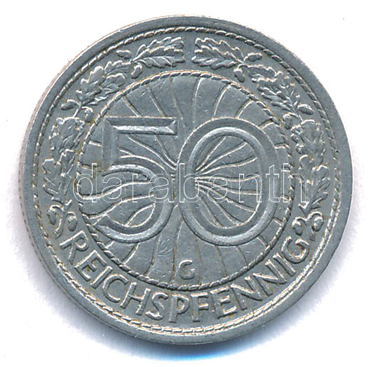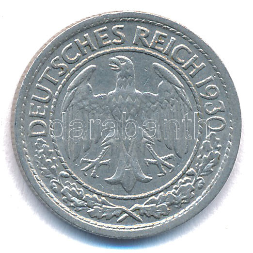 https://www.darabanth.com/en/437-Online-auction/437.0/Numismatics/Worldwide-silver-and-metal-coins~2500001/Nemetorszag-Weimari-Koztarsasag-1930G-50pf-Ni-TXF-patina-Germany-Weimar-Republic-1930G-50~II2841311