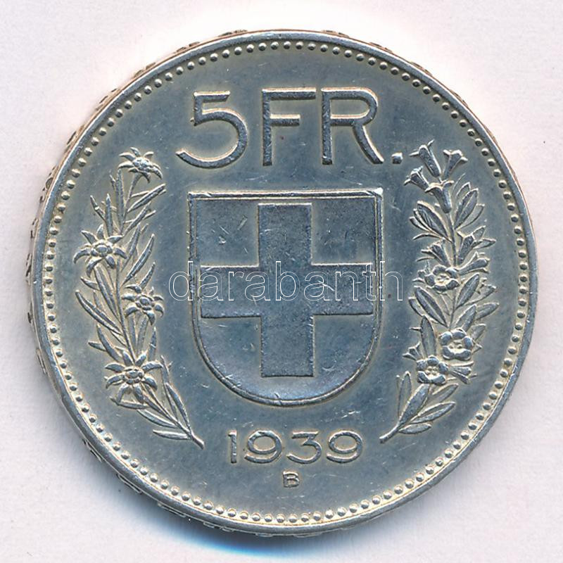 https://www.darabanth.com/en/437-Online-auction/437.0/Numismatics/Worldwide-silver-and-metal-coins~2500001/Svajc-1939B-5Fr-Ag-TXF-Switzerland-1939B-5-Francs-Ag-CXF--Krause-KM23402~II2850788