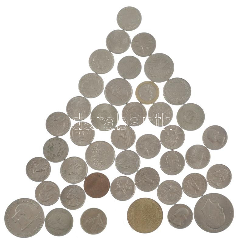 Vegyes, 42db-os, főleg külföldi érméből álló tétel, közte Amerikai Egyesült Államok, Svájc, NSZK T:vegyes Mixed 42pcs, mostly foreign coin lot, within USA, Switzerland, GFR C:mixed