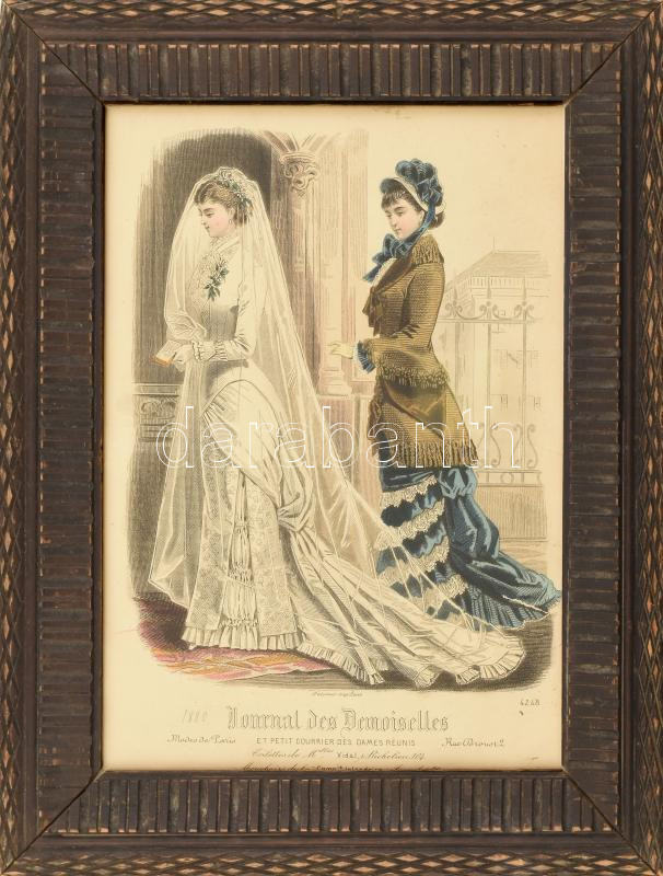 1880 Divatillusztráció esküvői ruhával a Journal des Demoiselles-ből. ... https://www.darabanth.com/en/437-Online-auction/437.0/Paintings-and-graphics/Engravings~500004/1880-Divatillusztracio-eskuvoi-ruhaval-a-Journal-des-Demoiselles-bol-Szinezett-rotacios-fa~II2842007