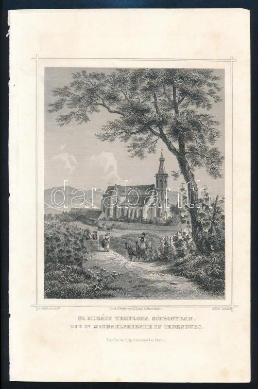 cca 1850 Ludwig Rohbock (1820-1883)-G. Hels: Szt. Mihály temploma Sopronyban. Die St. Michaelskirche in Oedenburg, Darmstadt, G.G. Lange,(Pest,Lauffer és Stolp), acélmetszet, papÃr, 16x12 cm, papÃr: 23x15 cm