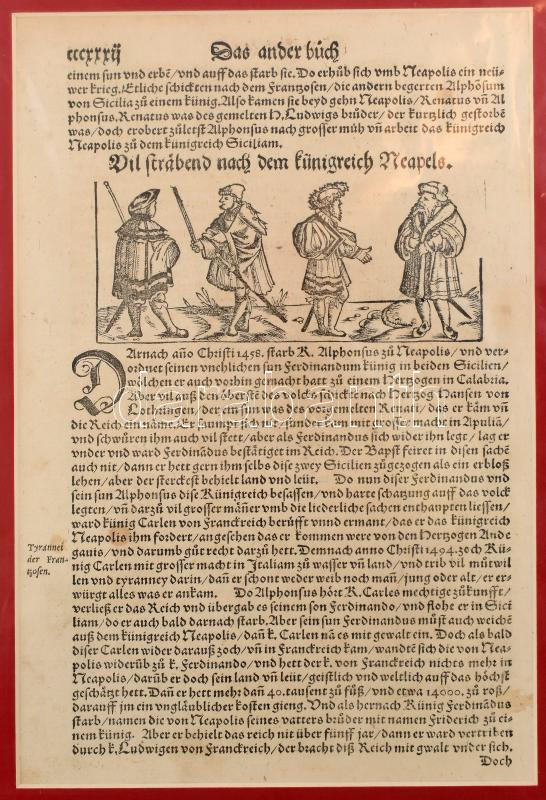 cca XVI. sz. Nápolyi életkép, In: Sebastian Münster: Cosmographie, ismeretlen XVI. sz. német nyelvű kiadás, papír, fametszet, paszpartuban, 26,5x16,5, paszpartu: 40x30 cm