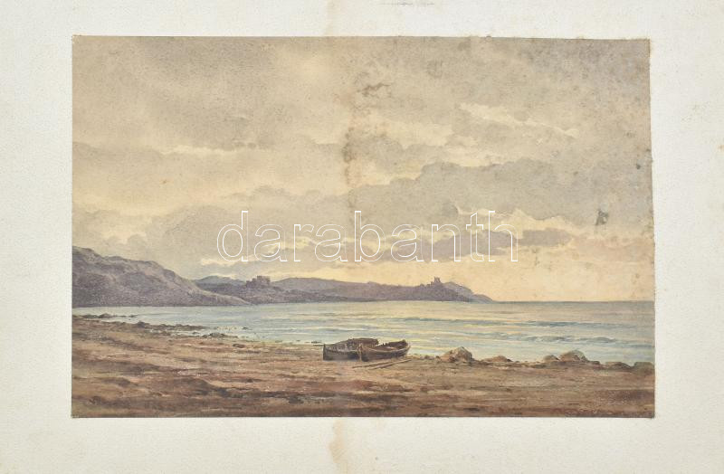 Jelzés nélkül, XIX. sz. vége/XX. sz. eleje: Bárkák. Akvarell, papír, kartonra kasírozva. Foltos. Kissé vetemedett. 27x41 cm.