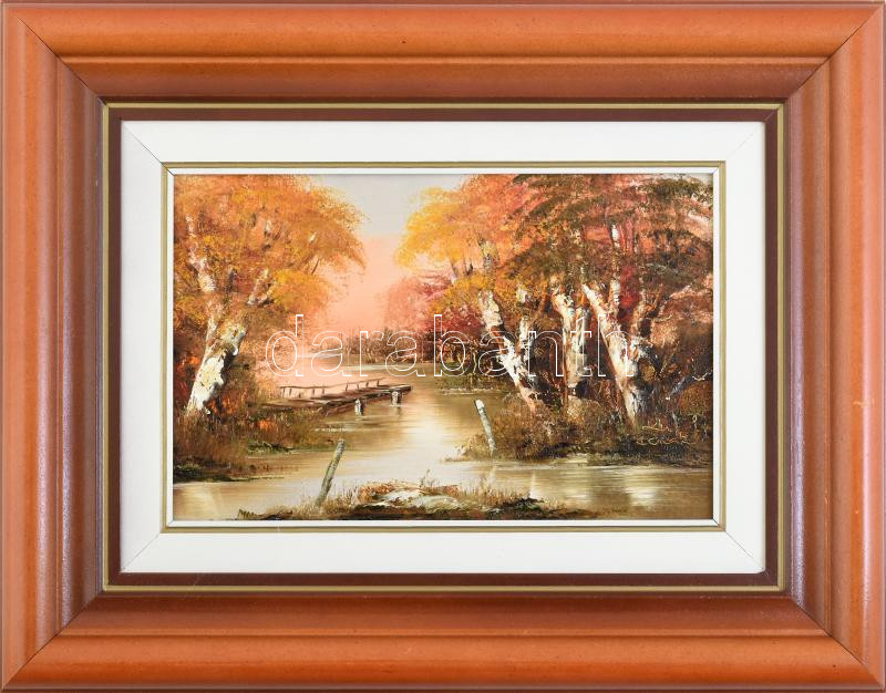 Bocsák Krisztina (1964- ): Vízparti alkony. Olaj, farost, jelzett, dís...