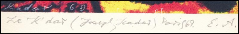 Description: Joseph Kádár (1936-2019): Absztrakt kompozíció. Elektrográfia, papír, jelzett, művészpéldány E.A. jelzéssel. Hátoldalon a művész pecsétjével. 26,5x18,5 cm