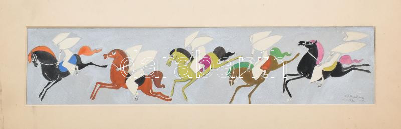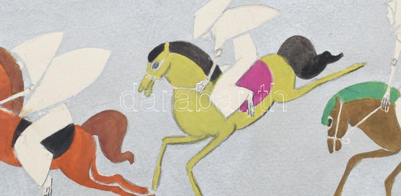 Róna Emy (1904-1988): Illusztráció az Ezeregy-éjszaka-meséiből, 1976. Vegyes technika, papír, jelezve jobbra lent, paszpartuban, paszpartu laza, 12×52 cm