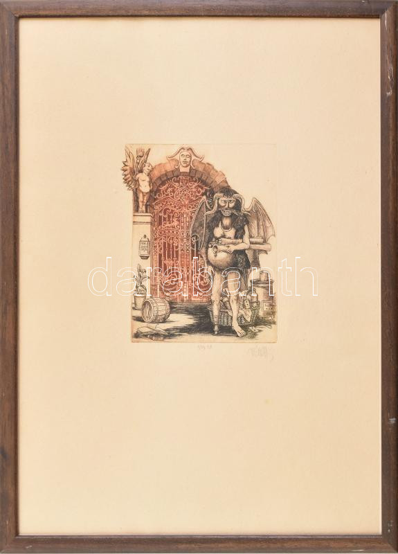 Vén Zoltán (1941- ): A kapu őrzője (cím nélkül). Színes rézkarc, papír...