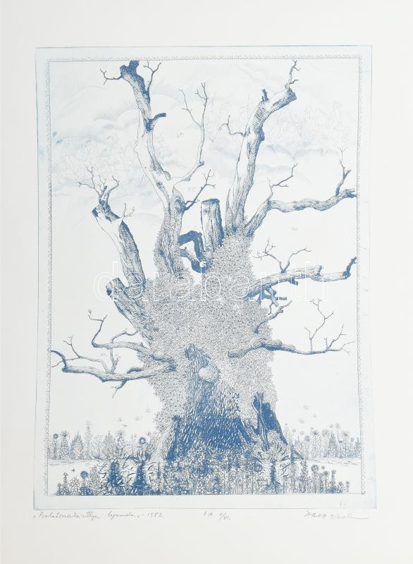 Zala Tibor (1920-2004): Balatonakarattyai legenda, 1982. Rézkarc, papí...