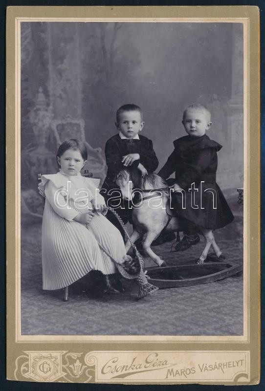 1902 Gyerekek hintalóval, keményhátú fotó Csonka Géza marosvásárhelyi ...