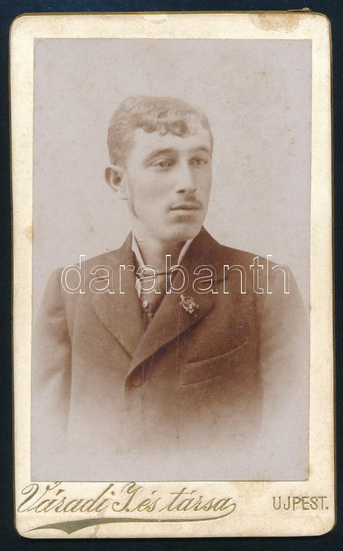 cca 1890 Férfiportré, keményhátú fotó Váradi I. és Társa újpesti műter...