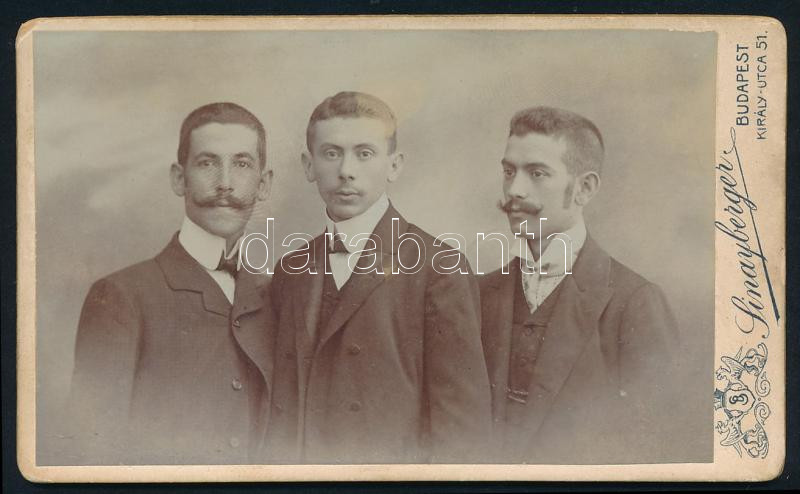 cca 1910 Három férfi műtermi portréja, keményhátú fotó Sinayberger Bél...