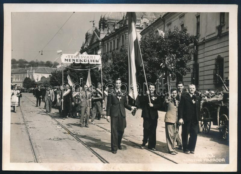 cca 1940 Temesvári menekültek felvonulása MFI fotó, kissé foltos 18x12...