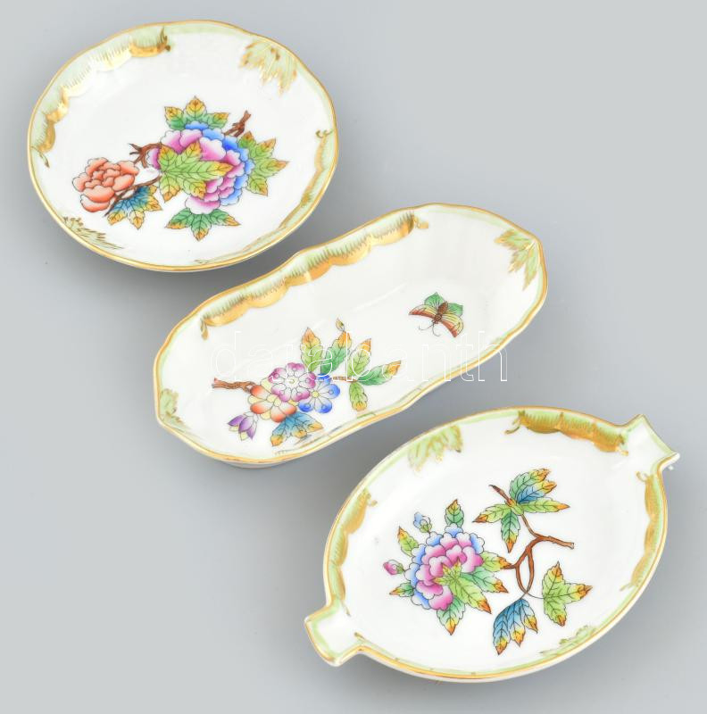 3 db Herendi Viktória mintás tálka, kopott, jelzett, d: 9-11-12 cm
