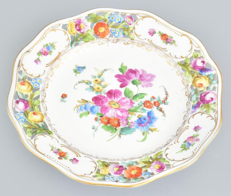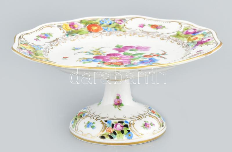 Dresden talpas kínálótál, jelzett, kopásokkal, m: 8,5 cm