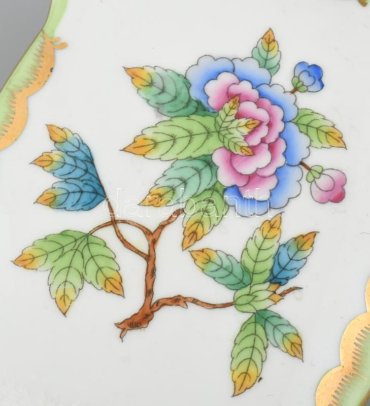 Herendi Viktória mintás porcelán bonbonniere. Kézzel festett, jelzett, hibátlan 14x10 cm