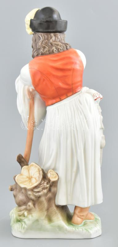 Herendi búsuló juhász, kézzel festett, jelzett, kopásokkal, m: 29,5 cm