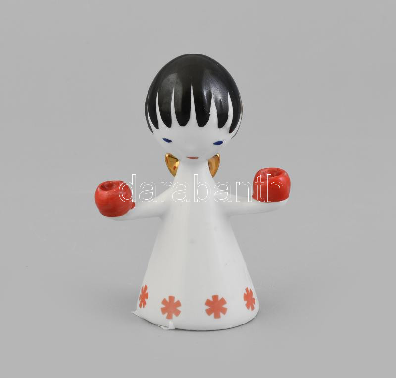 Hollóházi porcelán angyalka. Kézzel festett, jelzett, hibátlan, m: 8,5 cm