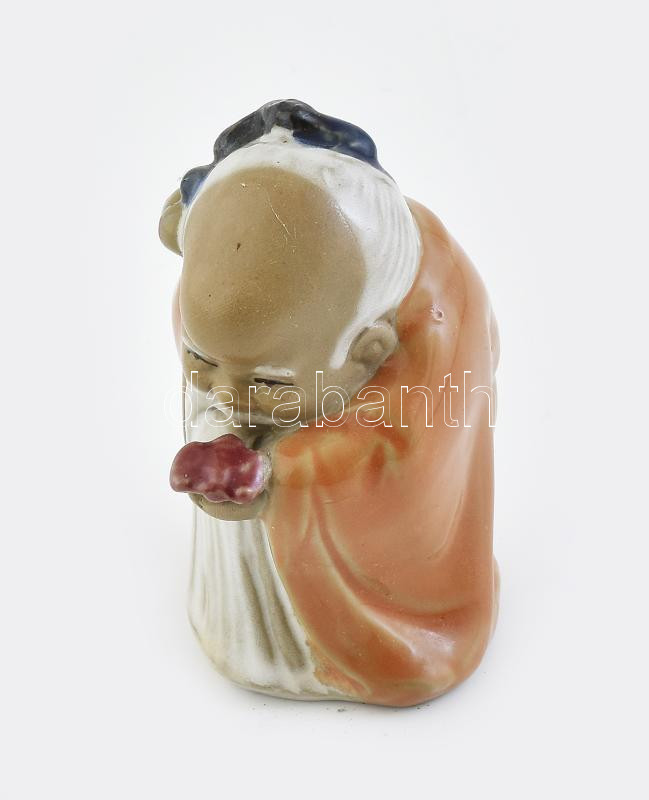 Kínai bölcs, sárfigura, jelzés nélkül, steinzug, hibátlan, m: 9 cm