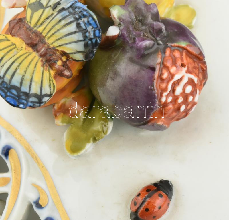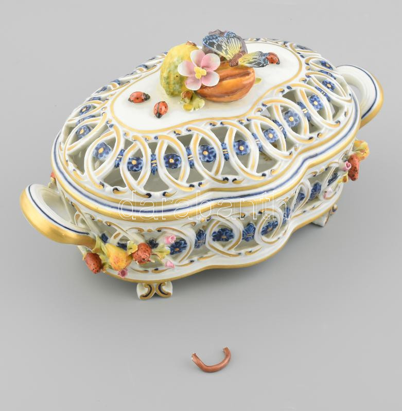 Sevres áttört bonbonier, porcelán, plasztikus díszítményekkel, jelzett...