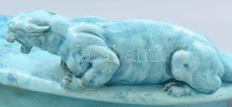 Zsolnay labrador alapmázas oroszlános asztali figurális dísztál, jelze...