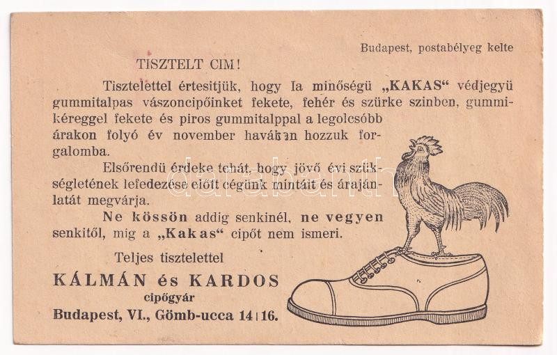 https://www.darabanth.com/en/437-Online-auction/437.0/Postcards/Advertisement~1500110/Kalman-es-Kardos-cipogyar-reklam-Budapest-Gomb-utca-14-16-Hungarian-shoe-factorys-adver~II2844338