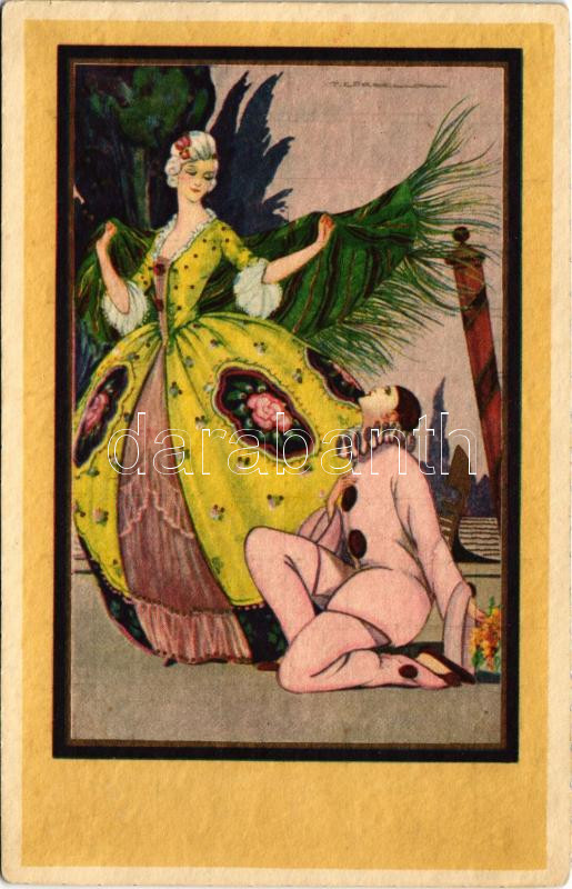 Italian lady art postcard with clown. Degami 1019. s: T. Corbella (EK)