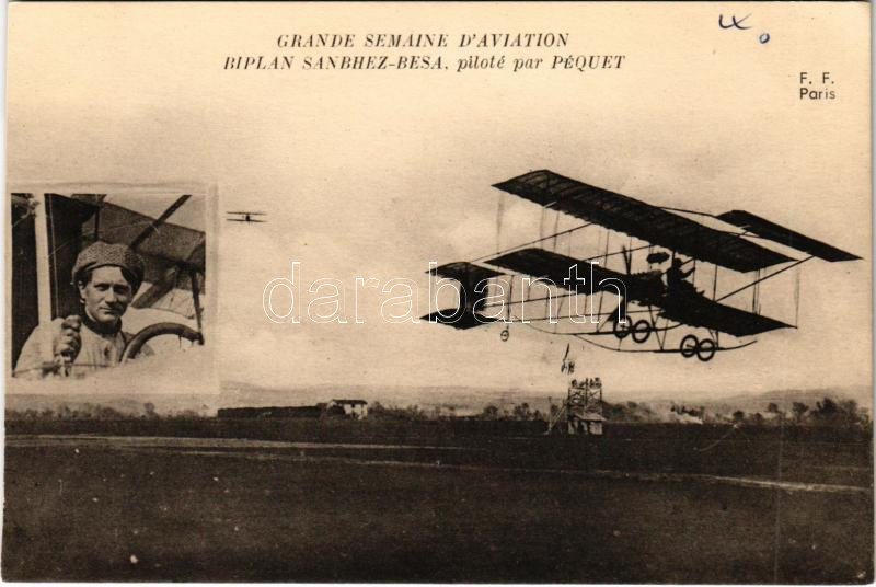 Grande Semaine d'Aviation Biplan Sanchez-Besa, piloté par Péquet ... https://www.darabanth.com/en/437-Online-auction/437.0/Postcards/Aviation~1500109/Grande-Semaine-dAviation-Biplan-Sanchez-Besa-pilote-par-Pequet-The-first-biplane-designed-by-S~II2838511