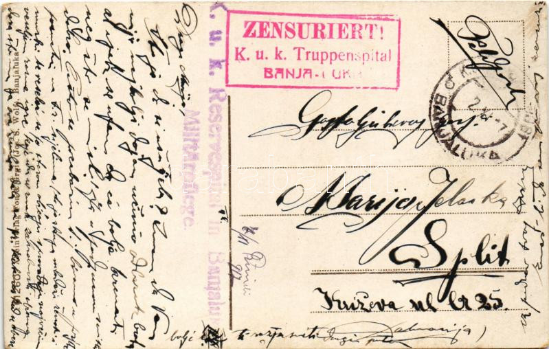 1917 Banja Luka, Banjaluka; Vorstadt, Bahnhof / railway station + "K.u.k. Reservespital in Banjaluka Militärpflege"